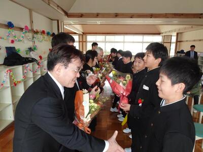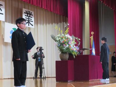 3月18日(水)、空から降り注ぐ春の陽光の下、多くのご来賓と保護者の皆様をお招きし、令和7年度北上立和賀西小学校第34回卒業証書授与式を挙行しました。小学校生活最後の授業に臨んだ6年生。卒業証書授与の際は、皆凛々しく顔を上げ、緊張しながらも穏やかな表情で卒業証書を受け取りました。「別れのことば」では、これまでの思い出と感謝の気持ちを自分たちの言葉に乗せ、参列した方々に気持ちを込めて伝えました。6年生の言葉を受け4・5年生からも、これまでの感謝とこれからの和賀西小を引き継ぐ自覚の言葉が述べられ、厳かな中にも温かみのある式になりました。全ての参列者に温かく見守られる中、今年度最後の行事は立派に締めくくられました。8名の卒業生の皆さん、中学校でのますますの活躍を祈っています。卒業おめでとう。